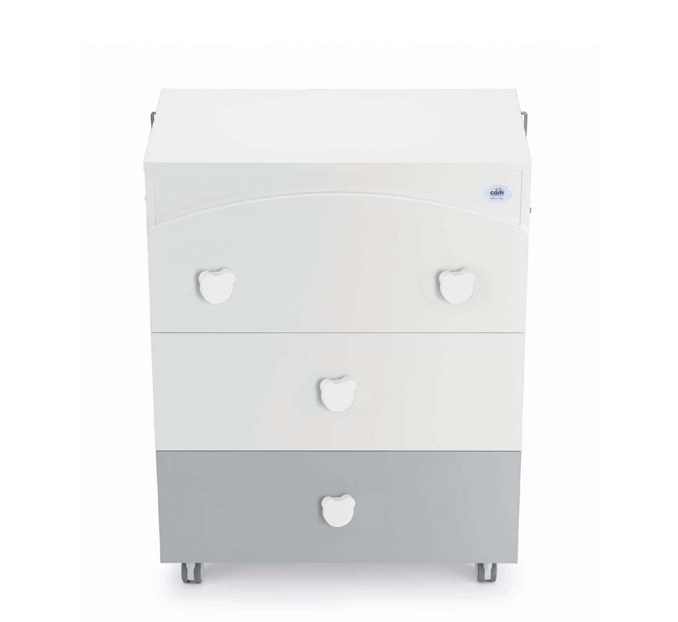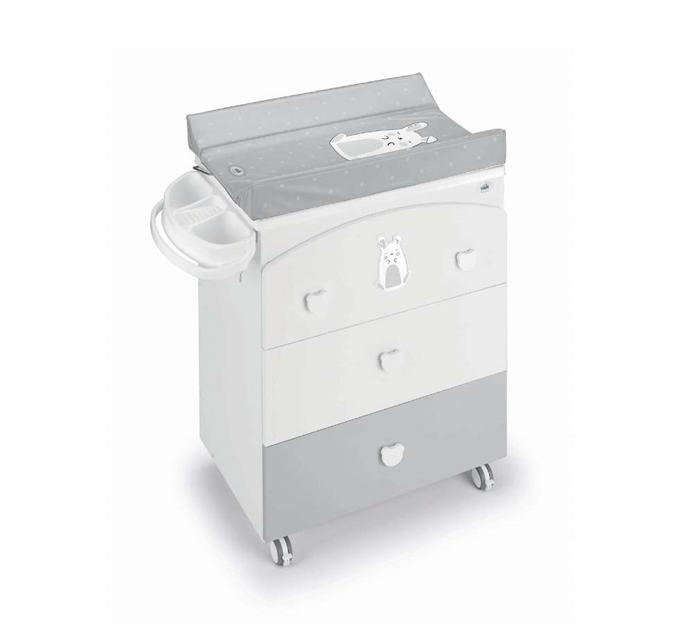 • Incorpora un morbido fasciatoio con sistema di anti-ribaltamento e un coperchio in legno per funzione mobiletto.