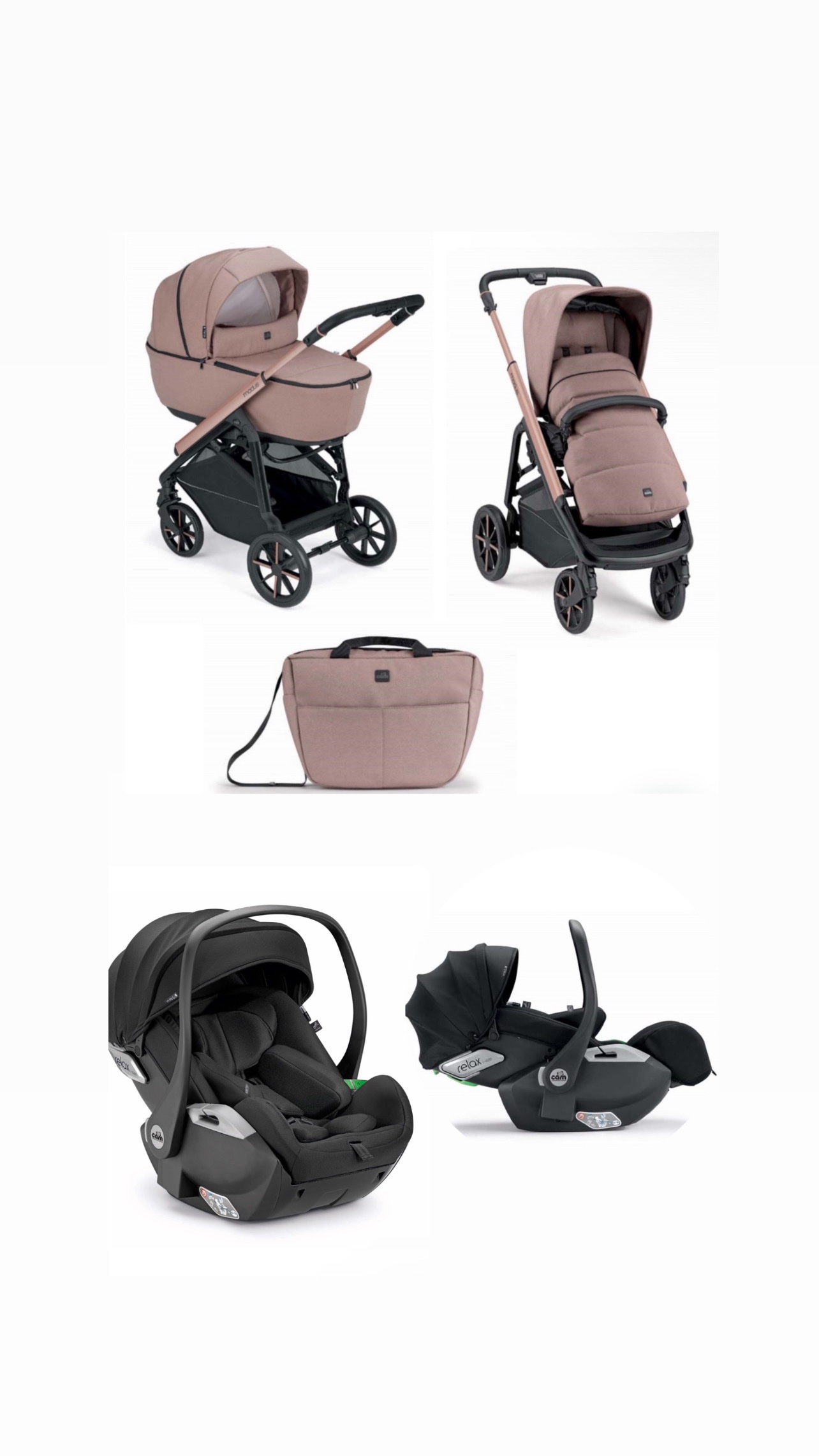 • Il trio Modus è composto da passeggino, navicella, seggiolino auto Relax e borsa.