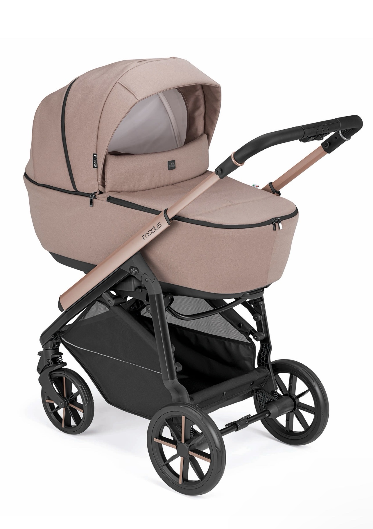 • Navicella: dotata di sistema di aggancio/sgancio rapido Quicky System. Maniglione dotato di un innovativo sistema di sblocco/blocco ad una sola mano, schienale reclinabile in 4 posizioni, Copertina con alzatina frangivento apribile con zip dotata di doppio cursore per apertura totale o parziale. Materassino con fondo aerato e base a dondolo. Cappottina con protezione solare UPF50+. Apertura con calamite della parte anteriore della carrozzina, ideale per le stagioni più calde. Materassino Simply, incluso e doppia modalità di utilizzo: lato in fresco bambù con discetto antiplagiocefalia per diminuire il rischio della sindrome della testa piatta e lato traspirante in rete 3D per favorire la circolazione dell’aria e la fuoriuscita dell’umidità corporea.
