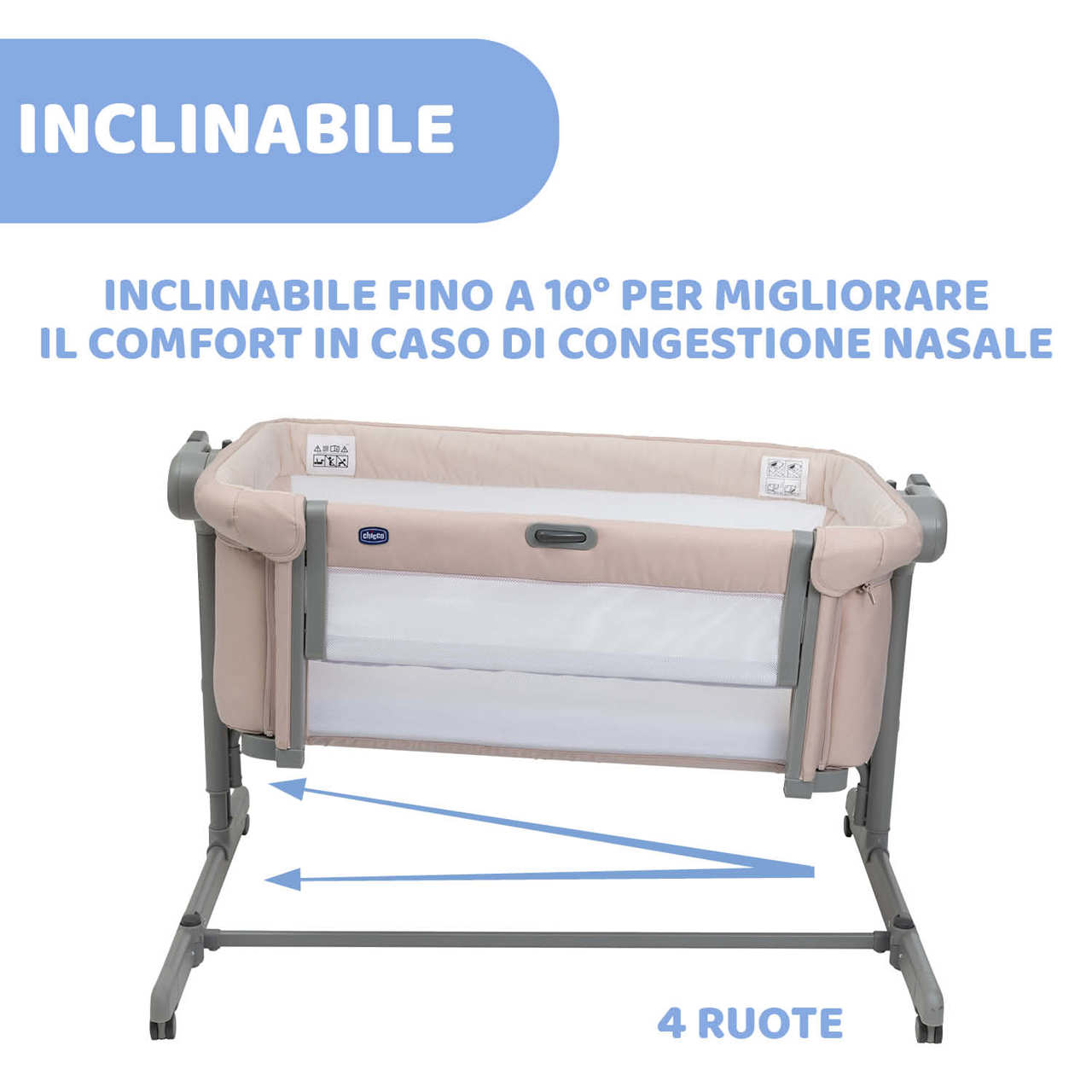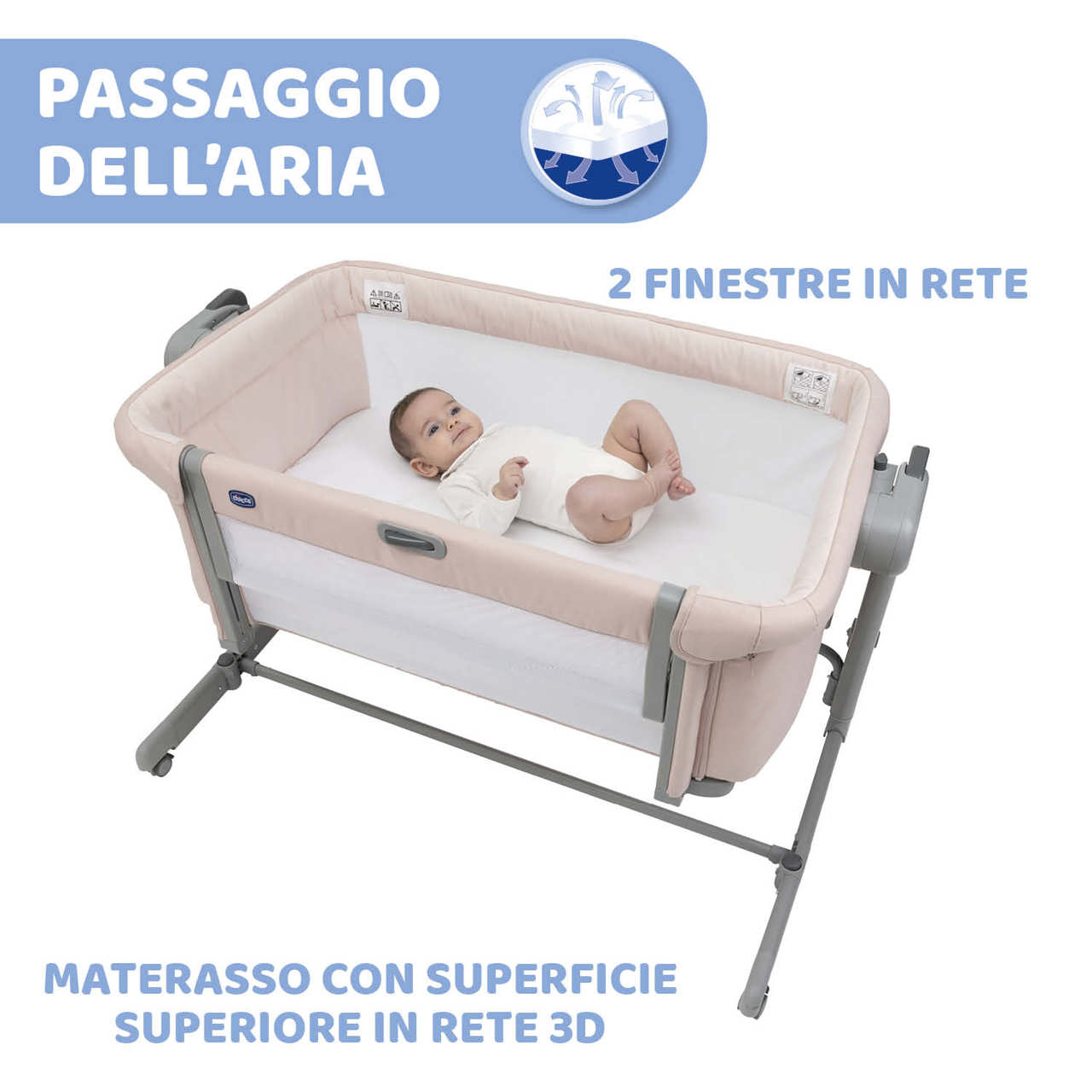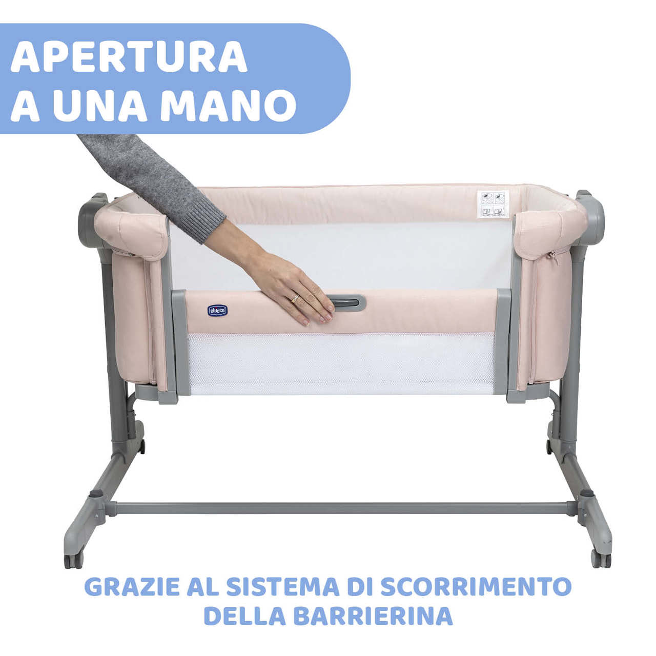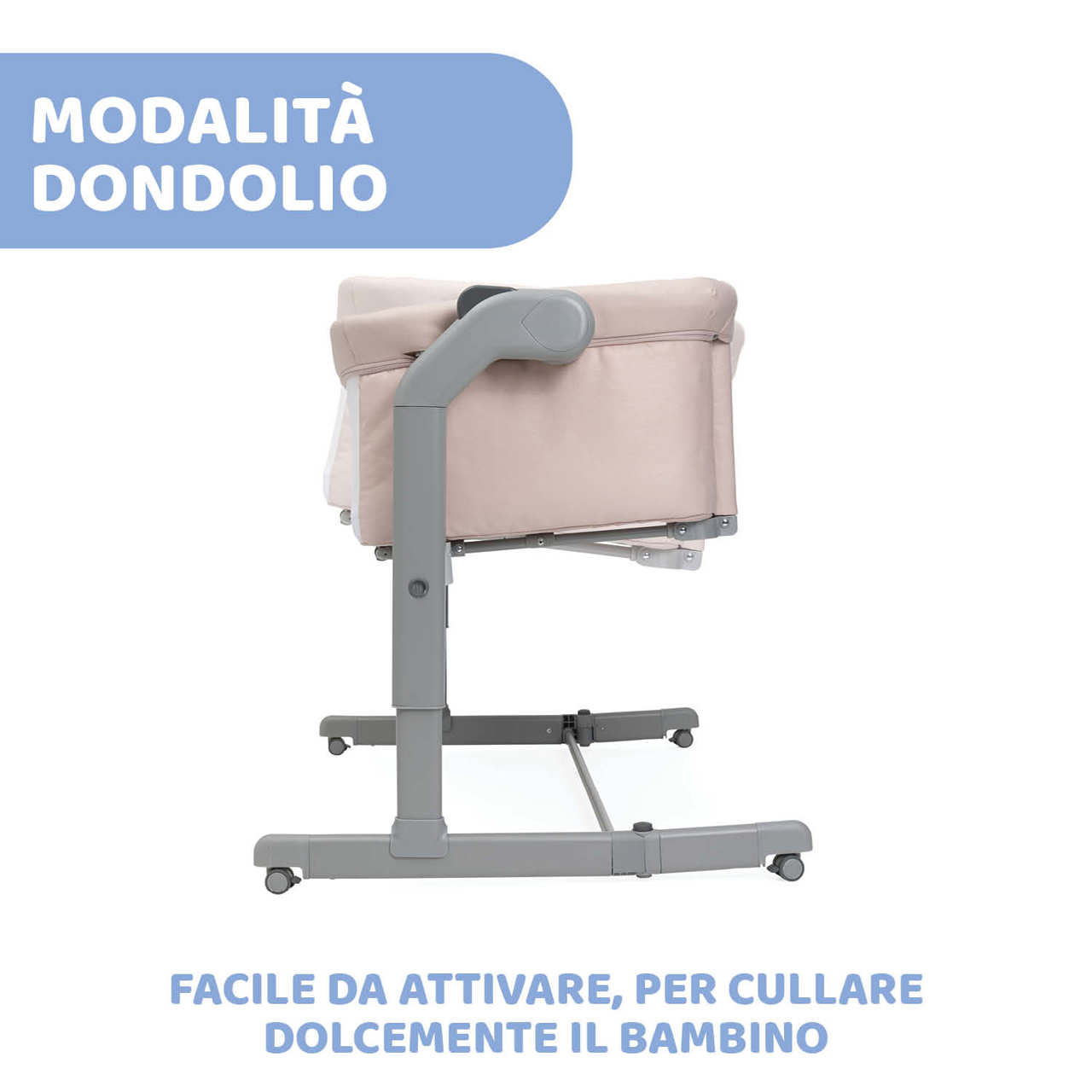 • In caso di utilizzo come culla tradizionale, Chicco Next2Me Magic Evo è dotata della modalità dondolio per cullare il bambino dolcemente.