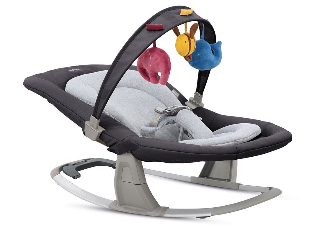 imbottitura ampia e comoda con cintura spartigambe rivestita in morbido jerseymorbido riduttore primi mesi in maglina di jersey traspirante e fondo in rete 3D per una migliore circolazione dell’arialeva di blocco dondolio: per passare dalla posizione fissa a quella basculantecomando centralizzato per un abbassamento graduale e controllato dello schienaleschienale regolabile in 3 posizioniforma curvata del telaio progettata per garantire un dondolio dolce e armonicomusic box con 3 melodie musicali classiche e regolazione del volumebarra dei giochi agganciabile in diverse posizioni per essere sempre raggiungibili dal bambinoUtilizzo: dalla nascita a 9 kg di peso