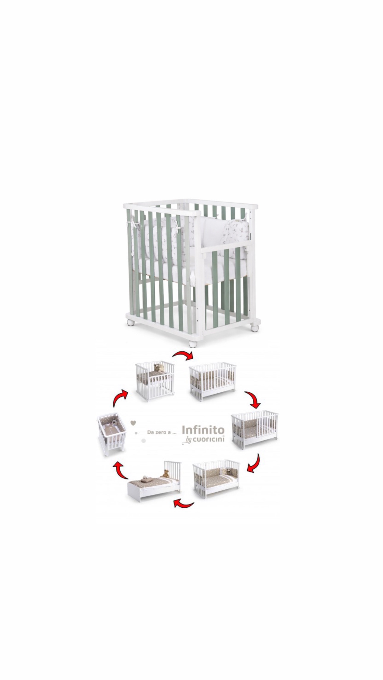 Cuoricini Culla e Lettino Evolutivo Infinito, la soluzione ideale per accompagnare il tuo bambino dalla nascita fino ai primi anni di vita. Progettato con materiali di alta qualità, sicuri e certificati, questo lettino trasformabile si adatta alle diverse fasi della crescita, unendo funzionalità, estetica e praticità.