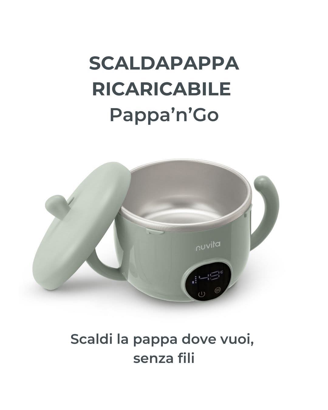 Realizzato con materiali di alta qualità e dotato di display touch, lo scaldapappa Pappa’n’Go funziona sia collegato ad una presa di corrente che con batteria ricaricabile per poterlo utilizzare ovunque; senza più aver la preoccupazione di dove, come e quando riscaldare la pappa quando si è fuori casa.
