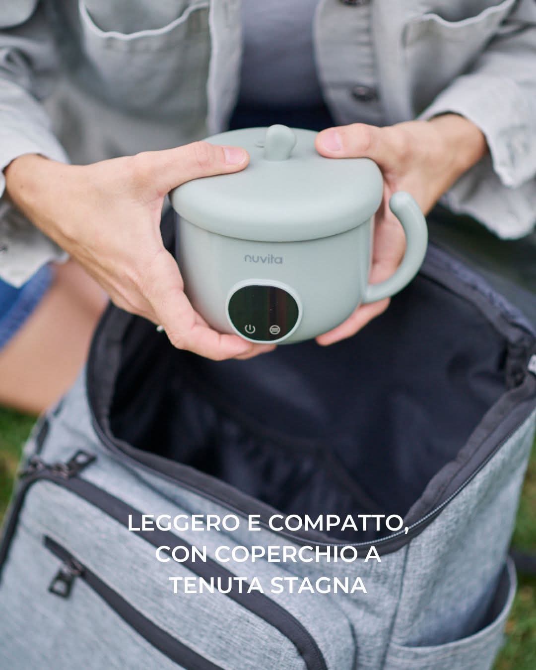 Lo scaldapappa portatile di Nuvita è leggero e comodo da trasportare, pesa solo 400 grammi ed ha una capacità di 470 ml.