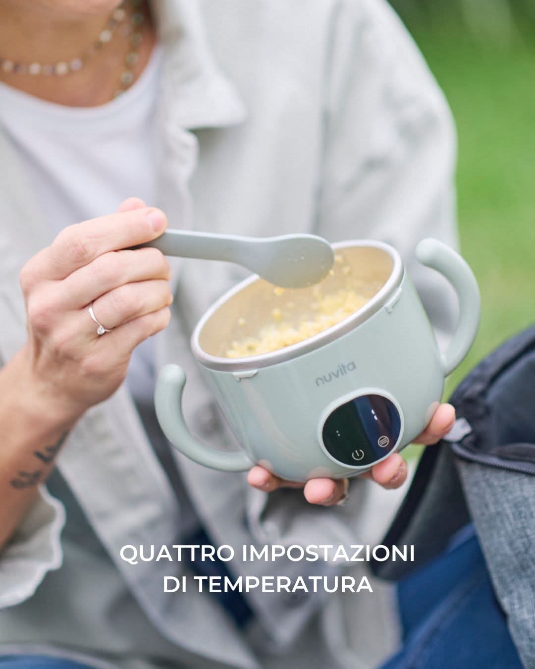 Oltre ad un’ampia autonomia di utilizzo, lo scaldapappa elettrico di Nuvita si distingue per la sua praticità : l’interno in acciaio inox permette, infatti, una distribuzione uniforme del calore ed il coperchio a tenuta stagna evita perdite di liquidi e gocciolamenti.