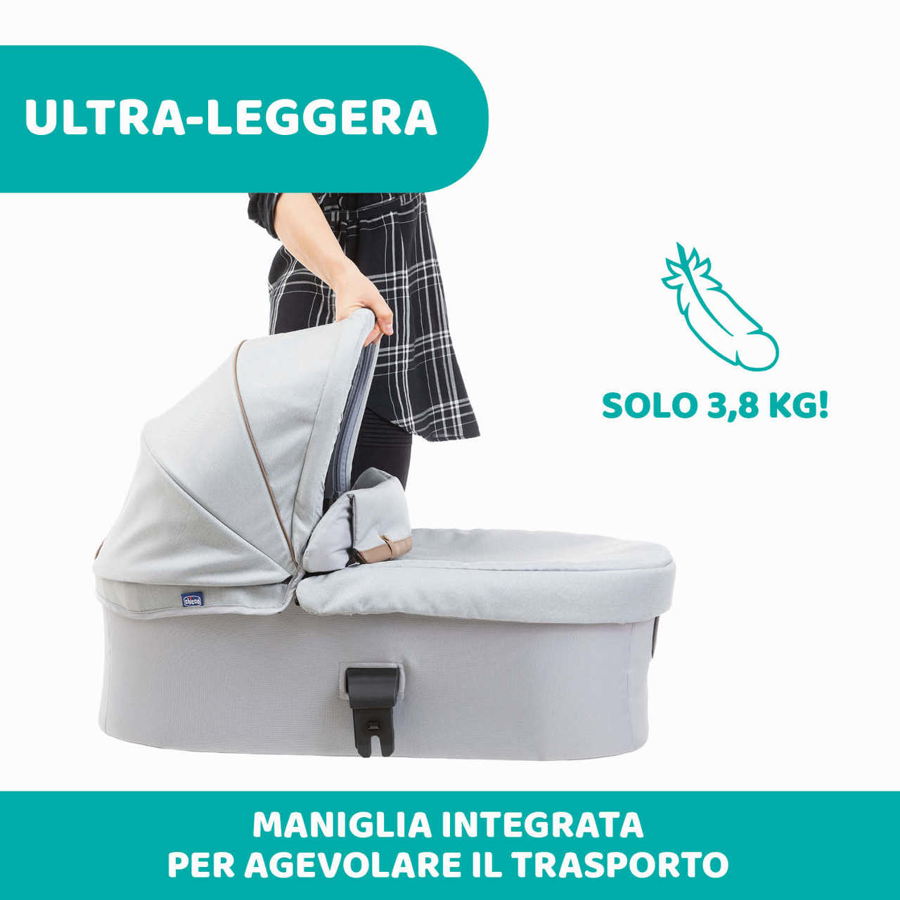 La navicella è estremamente funzionale per i genitori che considerano prioritarie la leggerezza e la compattezza. Infatti, grazie al suo peso di soli 3,8 kg, è facile da usare e da trasportare.