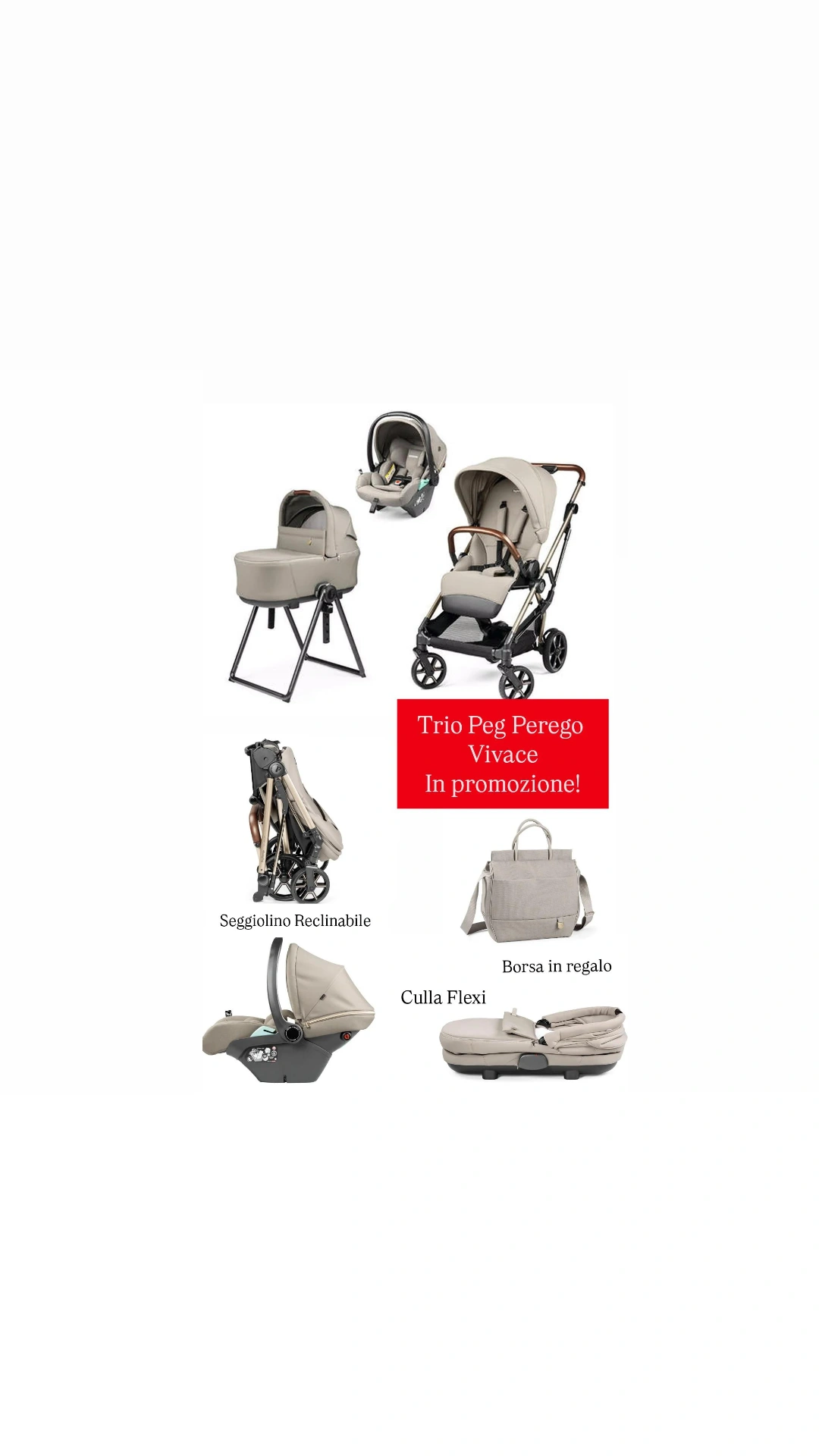 Trio peg perego Vivace con Navicella flexi e ovetto reclinabile